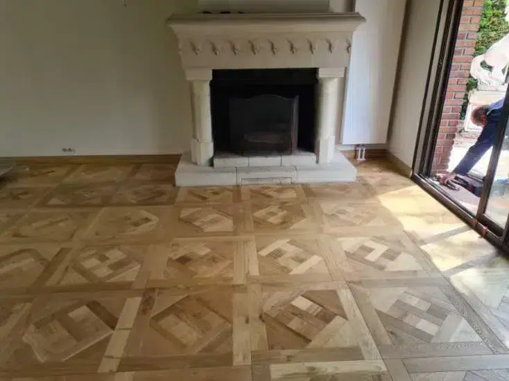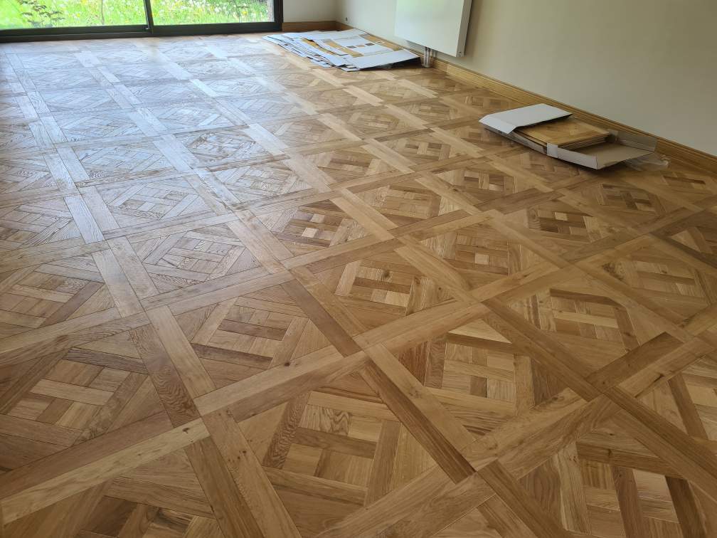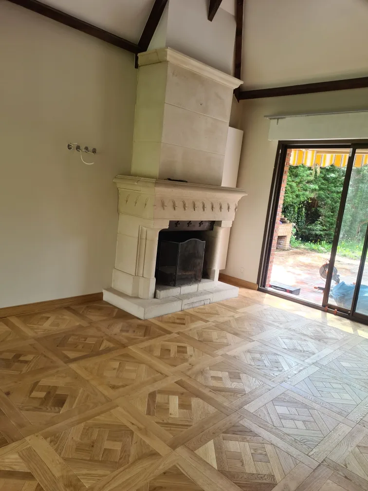 Quelques photos de la pose de notre Parquet de Versailles, coloris Naturel, dans le salon d’une habitation en métropole Lilloise.